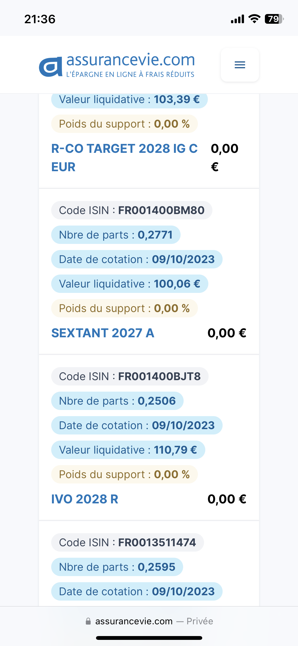 Cela complique lâaffichage ligne par ligne sur Finary, jâen suis certain, mĂȘme si je conçois que tu nâen sois pas convaincu car par chance pour toi, ton affichage sur assurancevie est Ă jour.
