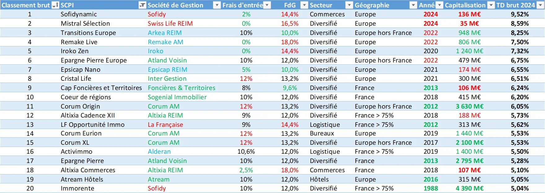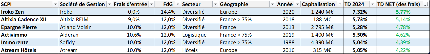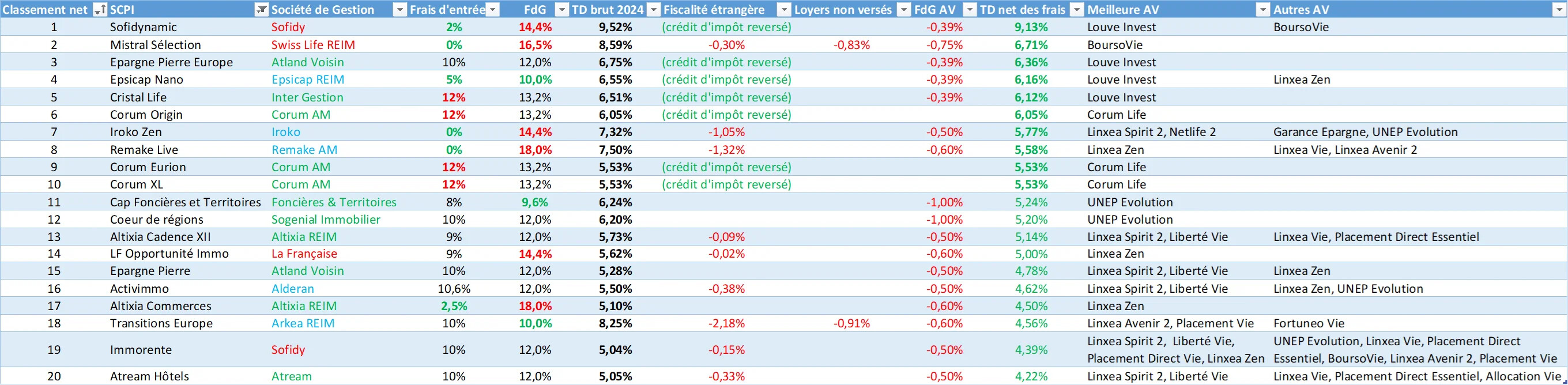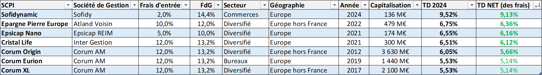 Jâai fait un classement des meilleures SCPI disponibles en AV net de frais et net de la fiscalitĂ© Ă©trangĂšre: