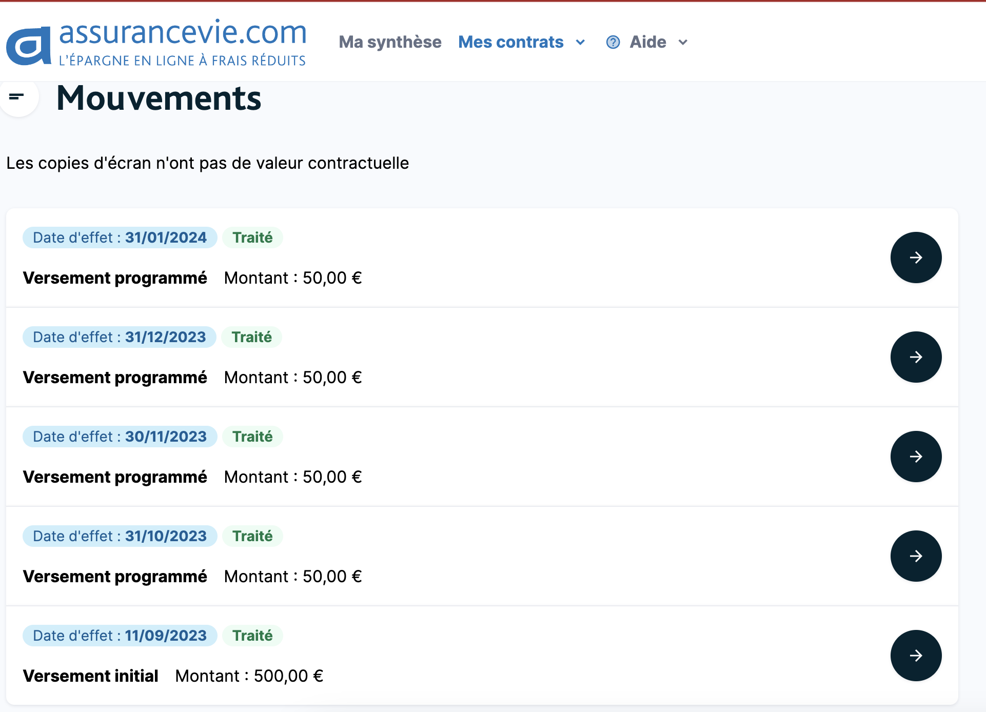 Câest sous votre contrat, cf le contrat ouvert pour mon fils avec versements programmĂ©s :
