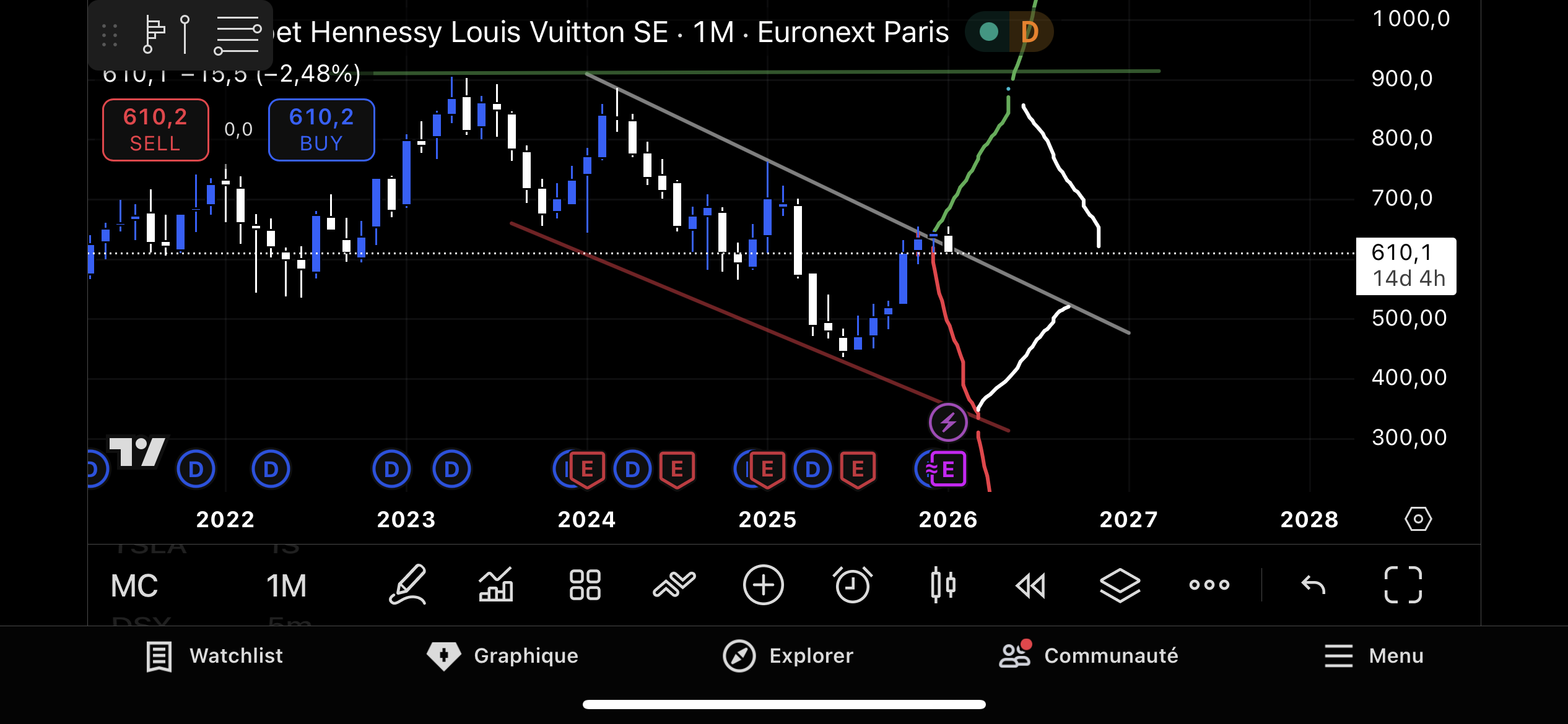 Quel sont vos avis sur LVMH ? Va t’elle réussir à remonter ? Faut t’il acheter ? Vendre ? Garder ? Merci !