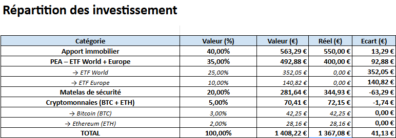 Pour info, avec ta répartition de décembre (environ 490 € investis en bourse), ton exposition géographique en bourse est d’environ 50 % aux États-Unis, 30 % en zone euro et 20 % dans les autres pays développés (Japon, Canada, Suisse, etc.)