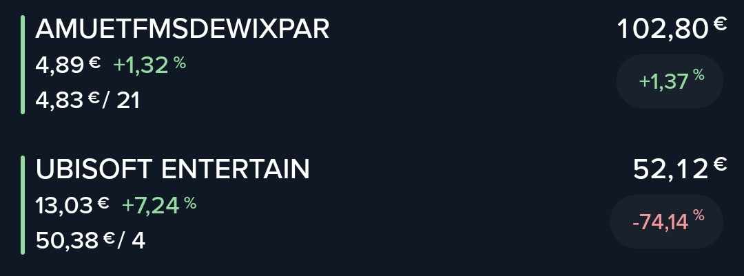 J’ai un PEA ouvert depuis 2021, et à l’époque j’avais uniquement acheté du Ubisoft, croyant initialement à un possible futur rachat (rachat que j’attends toujours, il va arriver un jour, mais quand…).