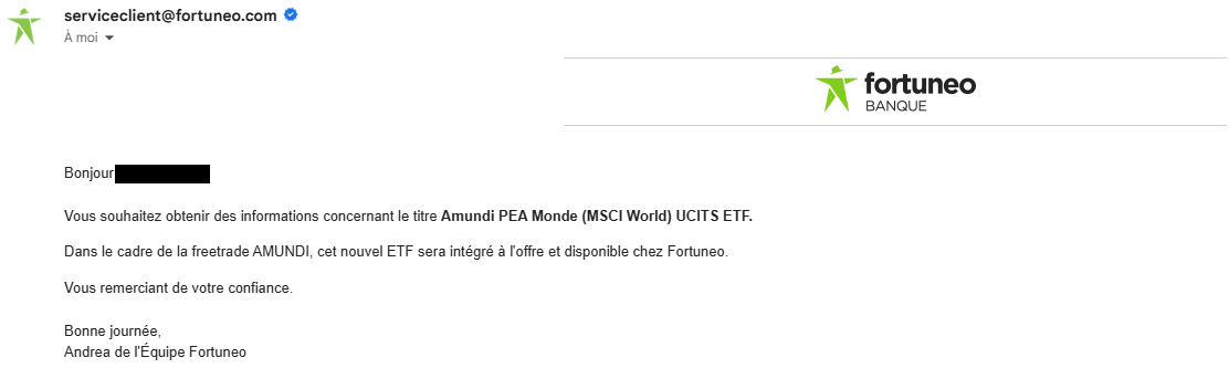 Curieusement, pas de rĂ©ponse de Fortuneo Ă mon email, alors que dâhabitude ils sont plutĂŽt rĂ©actifs !