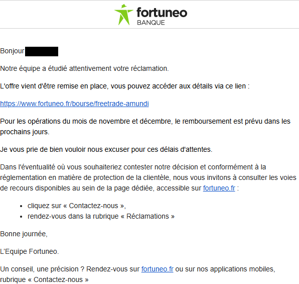 La réponse de Fortuneo est enfin arrivée et elle est conforme à tout ce qui peut se lire à droite et à gauche.