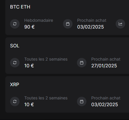 L’ordre BTC & ETH est bien passé à midi (merci la baisse de ce matin) par contre le SOL est toujours pas passé à 15h.