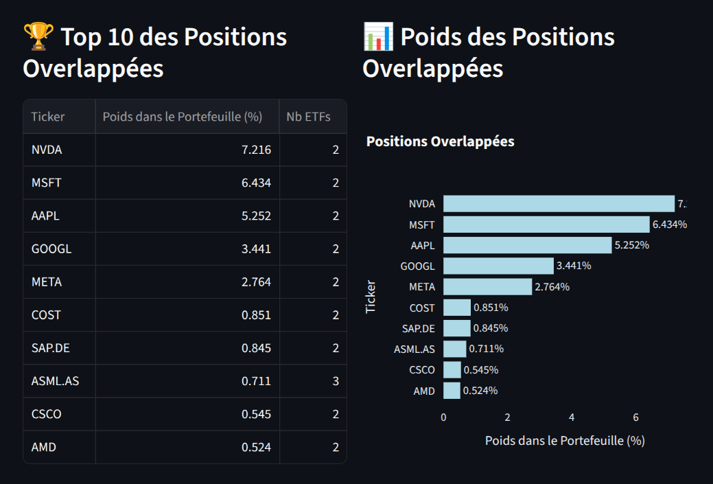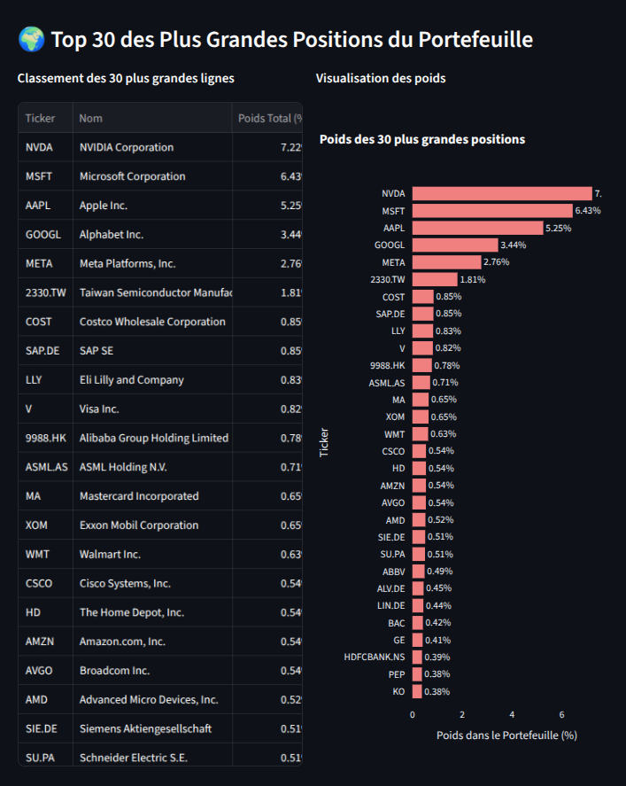 Je serais aussi intéressé d’avoir la composition globale du portefeuille par position, en gros juste ces 2 graphiques mais indépendamment de l’overlap et avec le top 30-50 des positions :