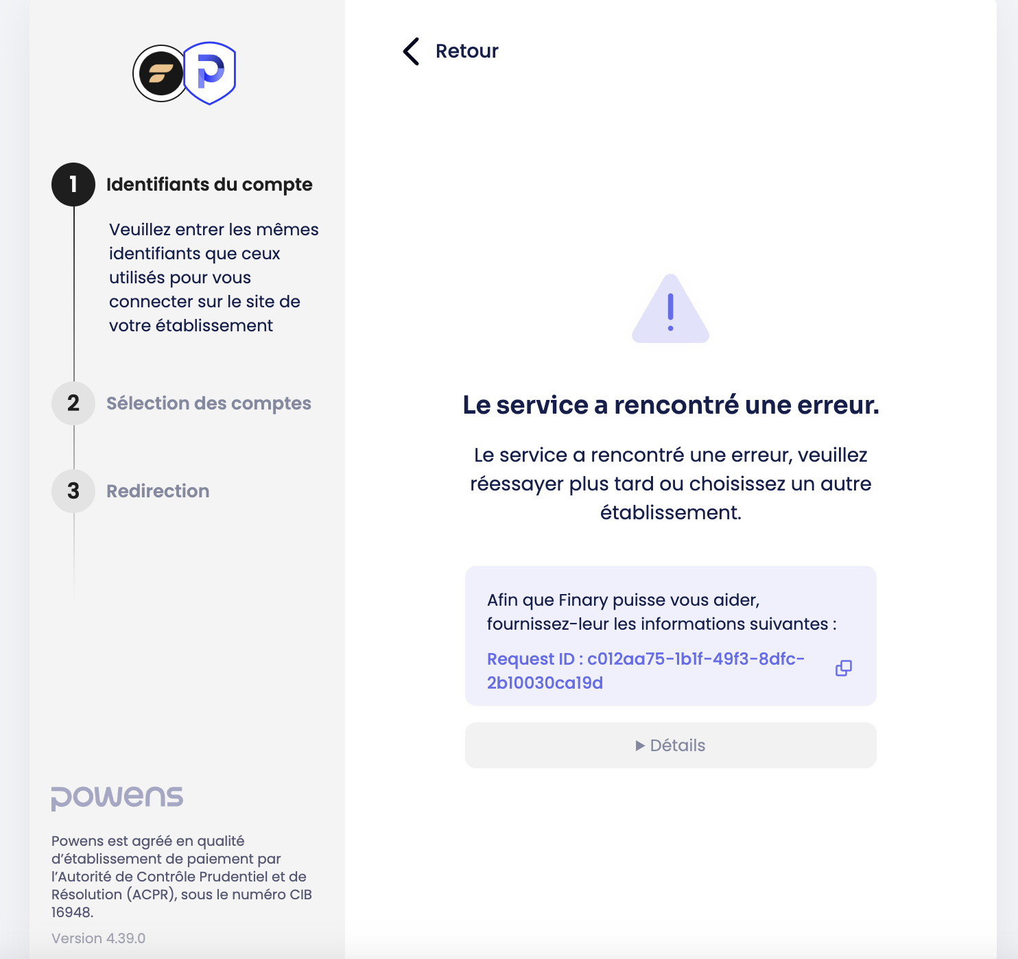 Code erreur : a4e4c377-9a7f-443d-87ad-79ccdd3da9b2