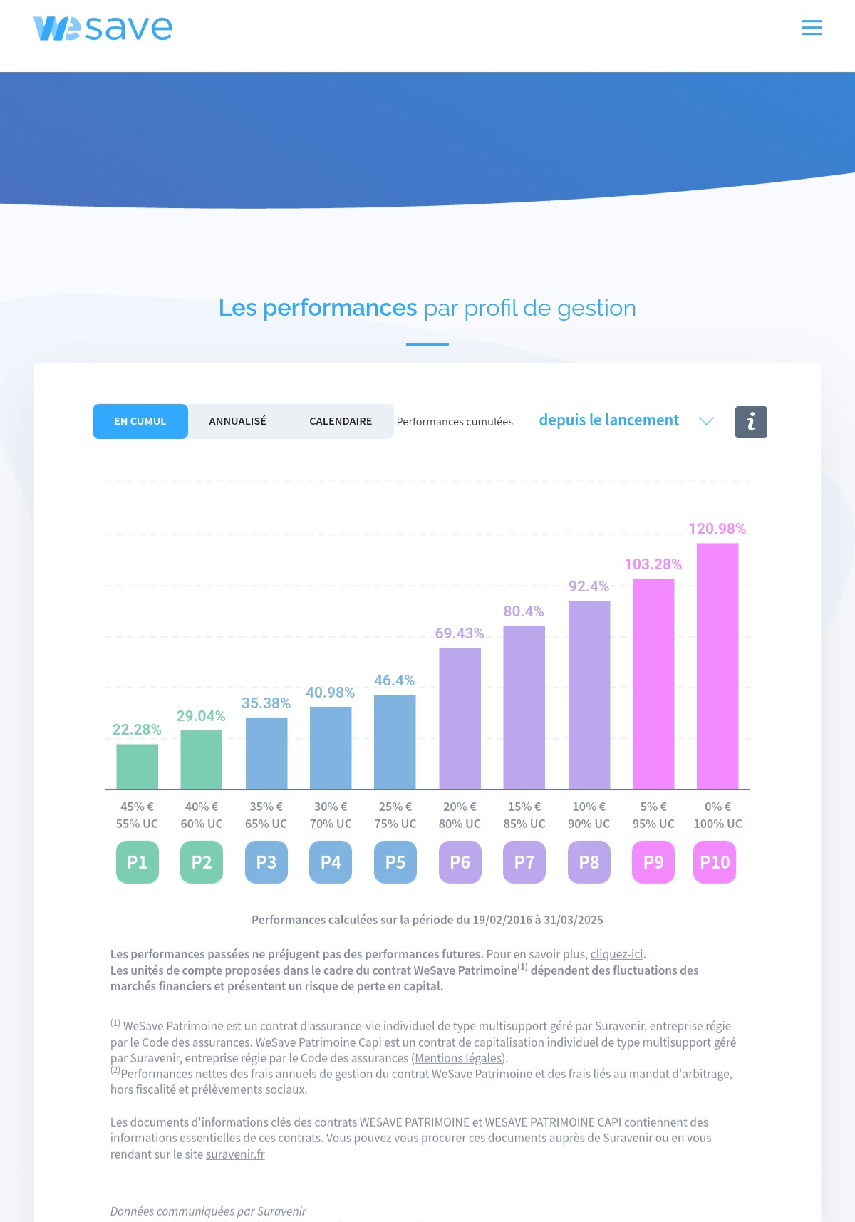 Pas fan des gestions pilotées mais j’ai quand même une assurance vie en gestion pilotée ETF en profil P10 chez WESAVE depuis 8 ans et je suis satisfait des performances et de la qualité de l’information de gestion reçue.