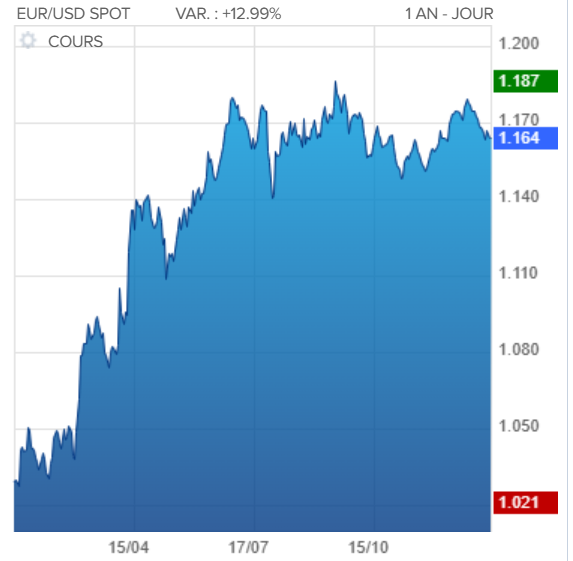 Pour info, la courbe de taux EUR/USD sur l’année écoulée