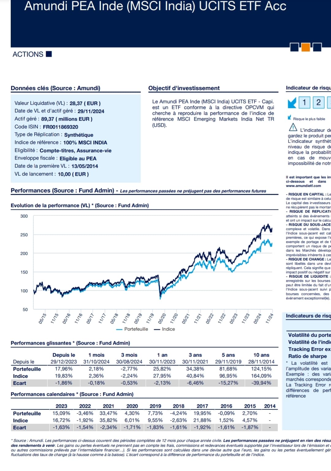 - Je n’ai pas de conviction sur les EM, mis à part l’Inde sur les 10 prochaines années d’où la présence de l’ETF Amundi PEA Inde