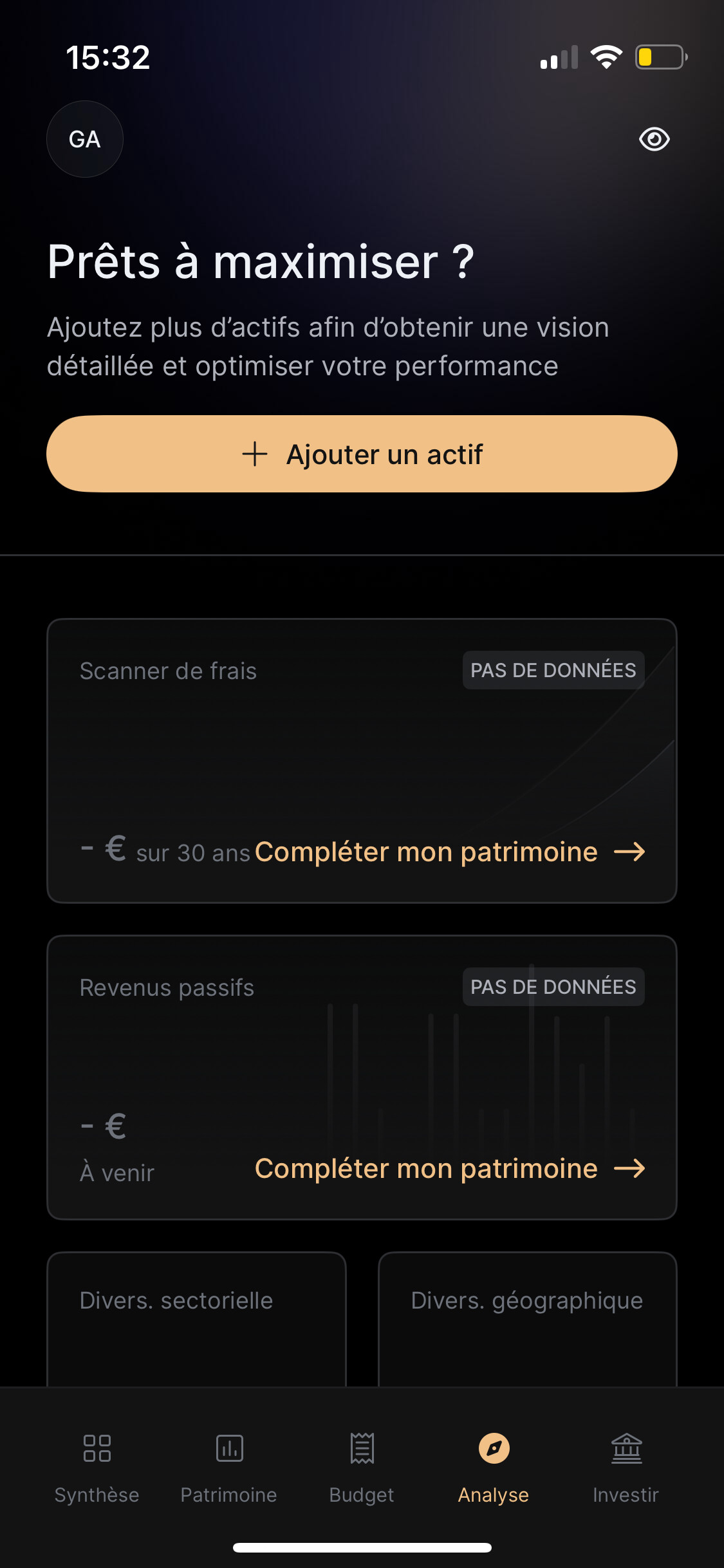 Il n’apparaît dans l’onglet «Analyse », aucune donnée… et mon patrimoine est « grossier », mes actions, Etf, crypto n’apparaissent pas de manière détaillé… Est ce normal ? Je suppose que non car sinon… quel intérêt ?