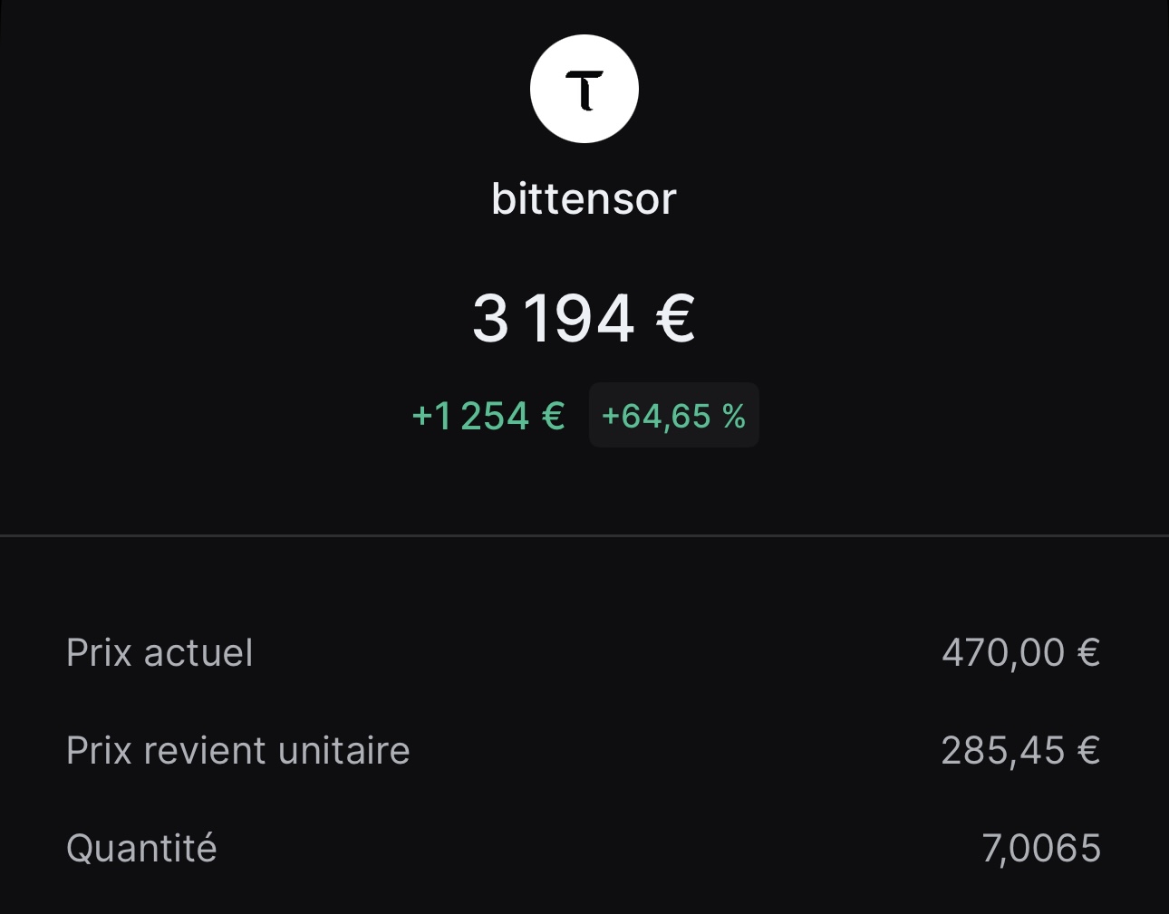 J’ai acheté pour 2,000 euros de TAO à un prix unitaire de 285,45€ pour une quantité de 7,0065.