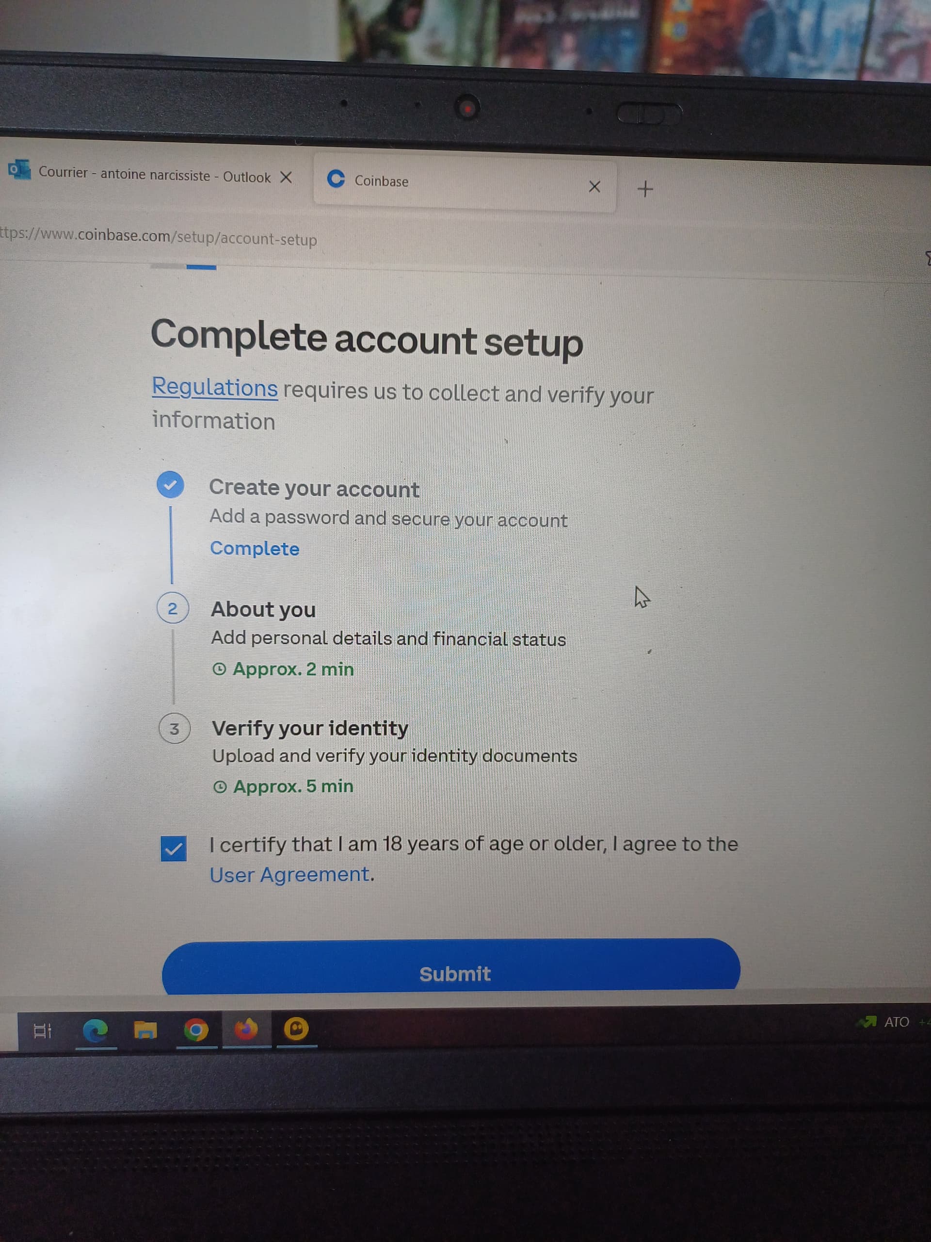 Cela fait 2 jouts que jbessaie d em inscrire sur Coinbase. Je suis sur x plateformes de courtages, banques, assu vie, crypto, je n ai jamais eu de soucis pour m inscrire. Mais pour le coup je suis dans l impasse totale. Le service client quii renvoie sans cesse vers ce fameux robot. J ai essaye 3 naviguateur sur l ordi , une tablette, 2 telephone. Toujours le meme soucis.