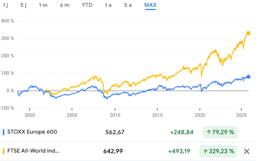 Sur le temps long, un indice monde surperforme largement un indice européen. Le choix est assez vite vu, sauf si tu as une très forte conviction sur l’Europe