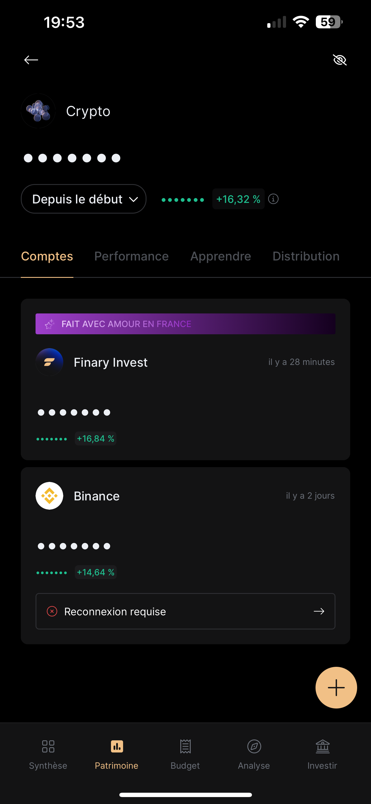 Depuis ce matin, et depuis l’application mobile, Finary me demande de reconnecter mon compte Binance.