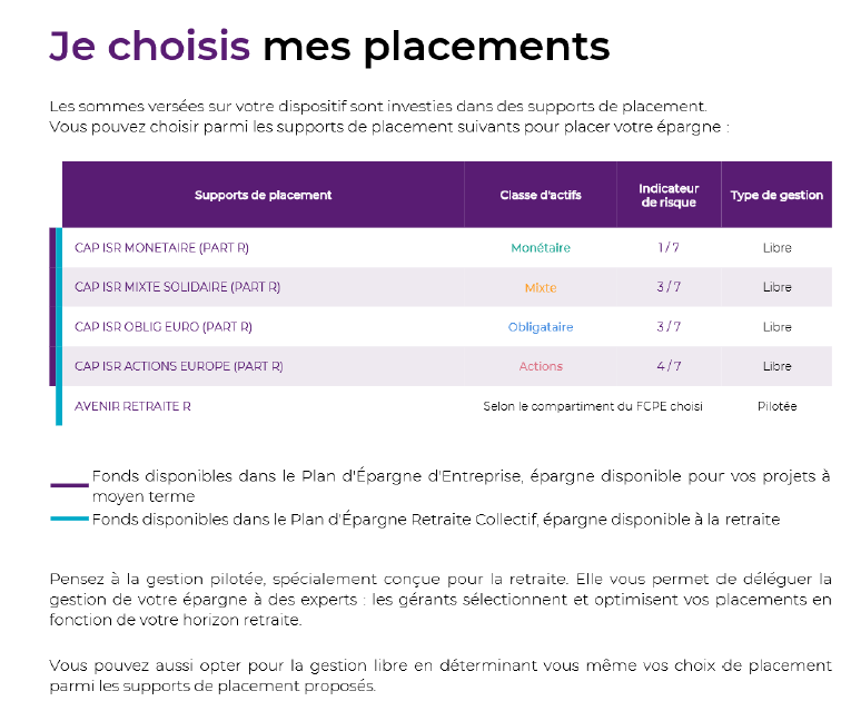 Tout à fait d’accord avec @kastayou , je rajouterai que c’est en général intéressant de placer les primes de participations/interessement dessus à condition de ne pas avoir besoin de l’argent à horizon 5 ans pour le PEE et la retraire biensur pour le PER.