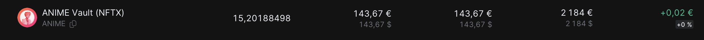Quand je vais sur Binance, aucune trace de ces 2000€, mais j’ai reçu la meme quantité de $ANIME que celle que Finary m’annonce de ANIME VAULT (NFTX).