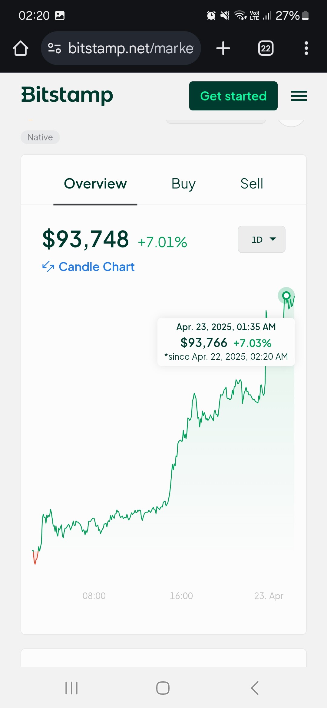 CâĂ©tait Ă 1H38 sachant que vers 1h35 le pic max affichĂ© sur bitstamp câĂ©tait 93 748 dollars.
