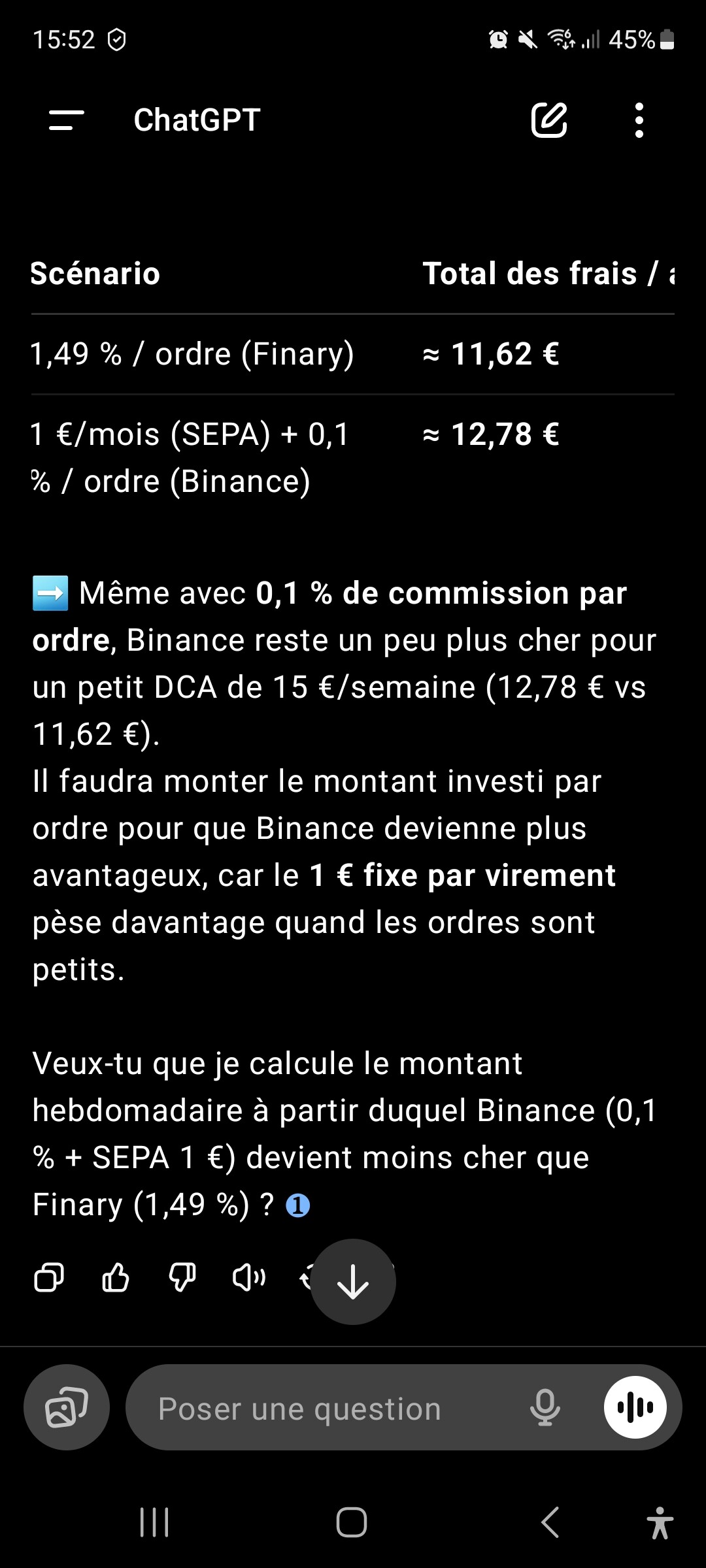 Il existe des plateformes comme Binance qui propose du dca (je suppose que tu parlais de ça dans ton message) pour 0.1% de frais. Par mois tu payerais 0.05€ contrairement à 0.75€ si tu restes sur Finary Invest.