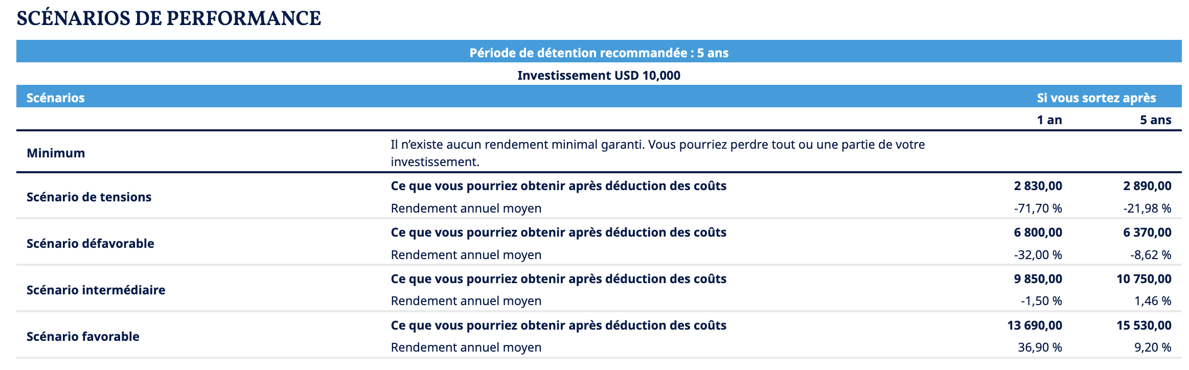 Par ailleurs, dans le tableau des scĂ©narios, quâest ce quâun scĂ©nario « intermĂ©diaire » et pourquoi il y a une performance uniquement sur le scĂ©nario favorable. Quand on regarde ce tableau Ă premiĂšre vu, on voit plus de risque de sous-performance quâautre chose