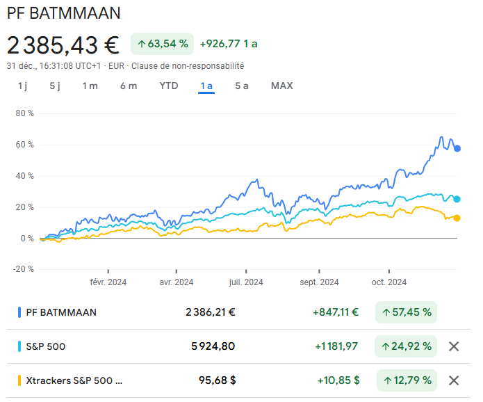 Si on avait investi uniquement sur BATMMAAN en dĂ©but dâannĂ©e on aurait fait plus de 5x le S&P 500 EQUI.