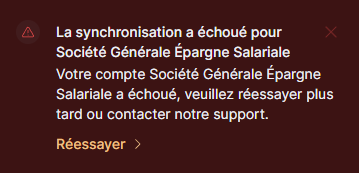 J’ai besoin de resynchroniser divers comptes, dont mon compte Epargne Salariale Esalia et mon compte Epargne Retraite Axa. Je suis certain de mes codes (je me suis connecté en parallèle sur les apps pour vérifier, mais je stocke mes mdp de manière sécurisée aussi), et pourtant j’ai droit, dans les 2 cas, à « identifiants incorrects »…