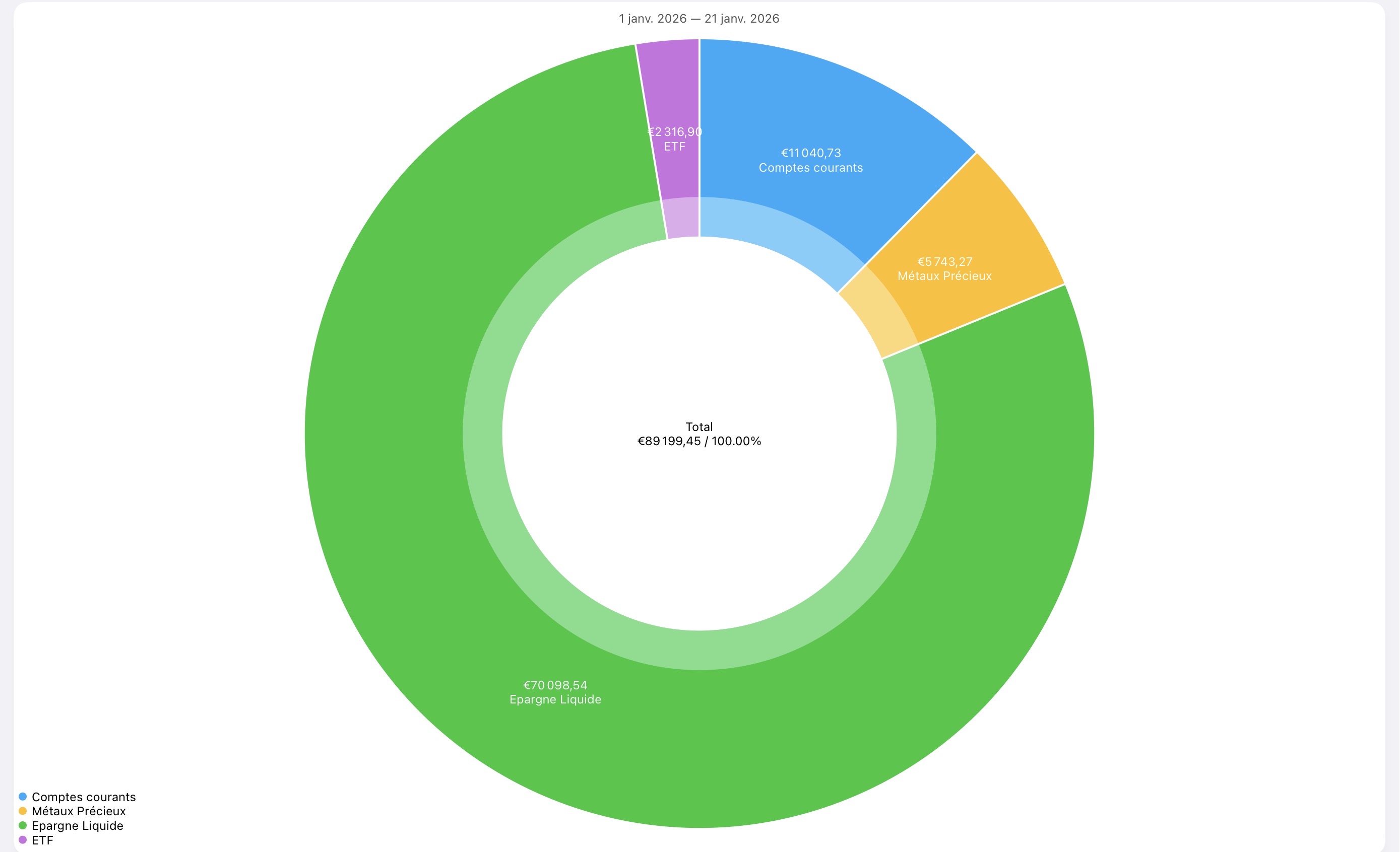 - Je peux investir entre 1000 à 1300 en DCA par mois (50% OR, 30% Argent et 20% PEA) et madame vers les 500/700 (tout en or et argent, elle est frileuse des ETF). Un avis sur ce plan ? J’ai l’impression que ça va encore empirer avec ce qui se passe avec Trump et donc l’or/argent vont continuer de surperformer les ETFs.
