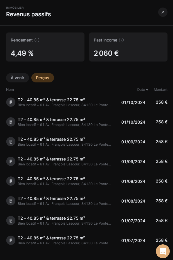 Cependant, jâavais dĂ©jĂ ajoutĂ© le bien sur la plateforme et celle-ci mâaffiche des dividendes que jâai dĂ©jĂ perçu alors que ce nâest pas le cas. Ai-je un moyen de les faire disparaĂźtre ? Ou sinon, pouvez-vous me confirmer que cela ne change en rien une quelconque performance ?