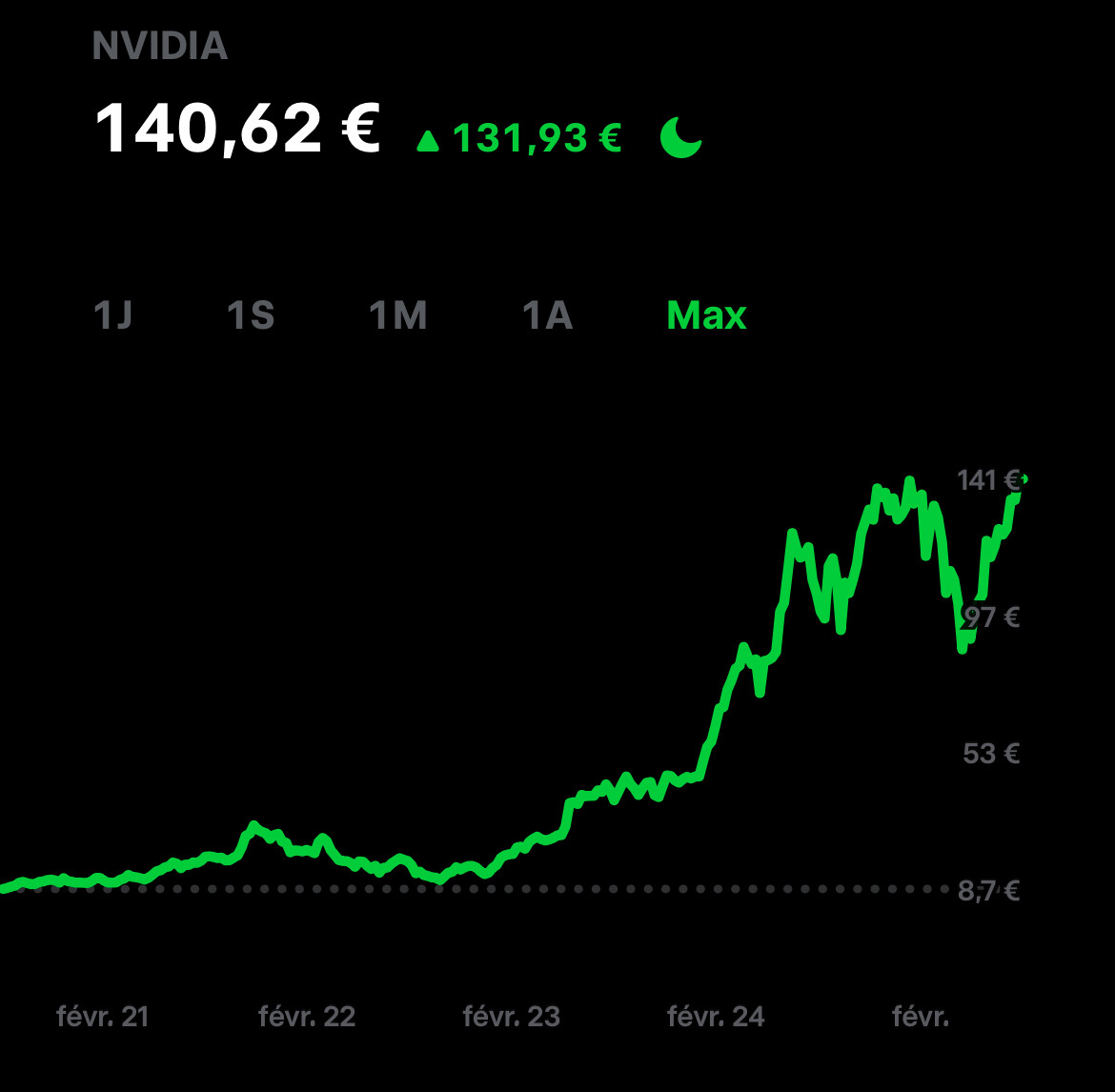 Bonsoir, petite question qui peut paraitre toute bête. Quelqu’un peut-il m’indiquer la différence entre le chart 1Y and Max sur TR. A quoi correspond concrètement les datas du Max - car les dates ne semblent pas être dans l’ordre comme pour le 1Year, et les performances changent grandement. J’ai imaginé que cela correspondait à l’agglomérât des meilleures performances daily. Merci par avance pour votre éclaircissement