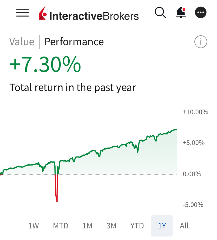 la courbe indiquĂ©e sur ibkr est Ă moitiĂ© fausse (ou presque vraieâŠ), car tant que tous mes trades en cours ne sont expirĂ©s, le delta continue son travail, lâerosion du temps, et le montant de la prime « validĂ©e » bouge de jour en jour suivant le cours du sous jacent, donc ibkr calcul le cours des plus values latentes, mais lorsque tous les trades seront expirĂ©s, je repasserai Ă +40% (ce qui nâarrivera pas puisque je fais une vingtaine de trades par semaine).
