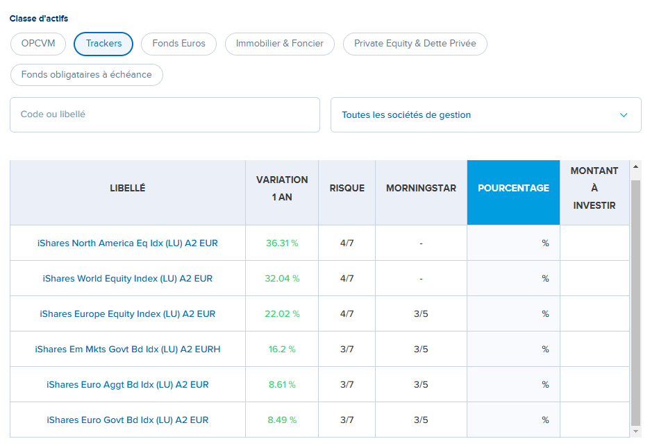 Si on désire passer en gestion libre , on peut trouver 6 fonds indiciels , pas des etf , aux frais plus élevés 0,56% /an ,en plus des frais d UC. Soit 1,06% /an . C est plus cher que la gestion pilotée