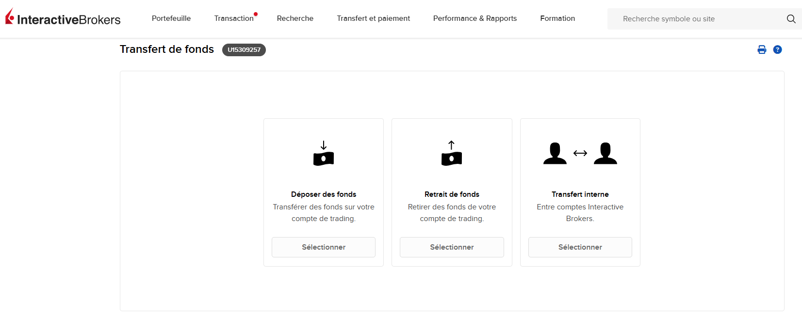 Jâai tentĂ© de transfĂ©rer mon PEA Boursobank vers IBKR mais la section « Transfert depuis un autre courtier » nâexiste pas dans « Transfert et paiement ».