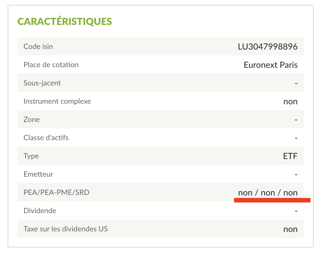 j’ai testé sur PEA fortuneo, mais j’ai un message comme quoi il n’est pas possible (pour l’instant?) de l’acheter sur un PEA.